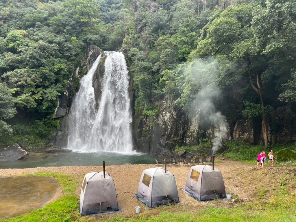 次は、滝の水風呂に入れるテントサウナ施設へ。