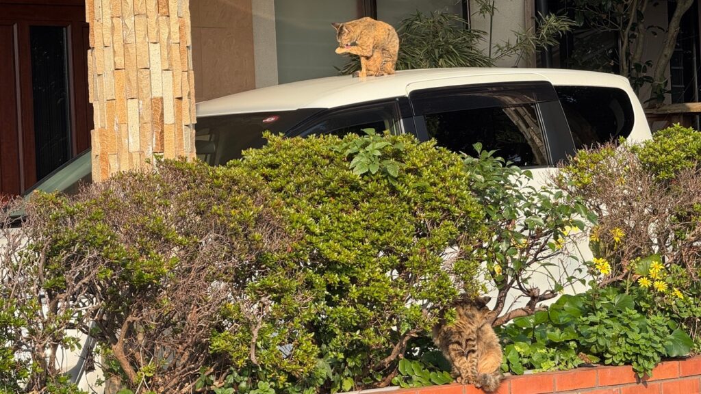 島中で猫を見かけたのでツシマヤマネコかな?と思ったんですが、レンタカー屋のおじさんでも野生は1回も見たことがないと言っていたので、多分ツシマヤマネコじゃなさそうです。残念。