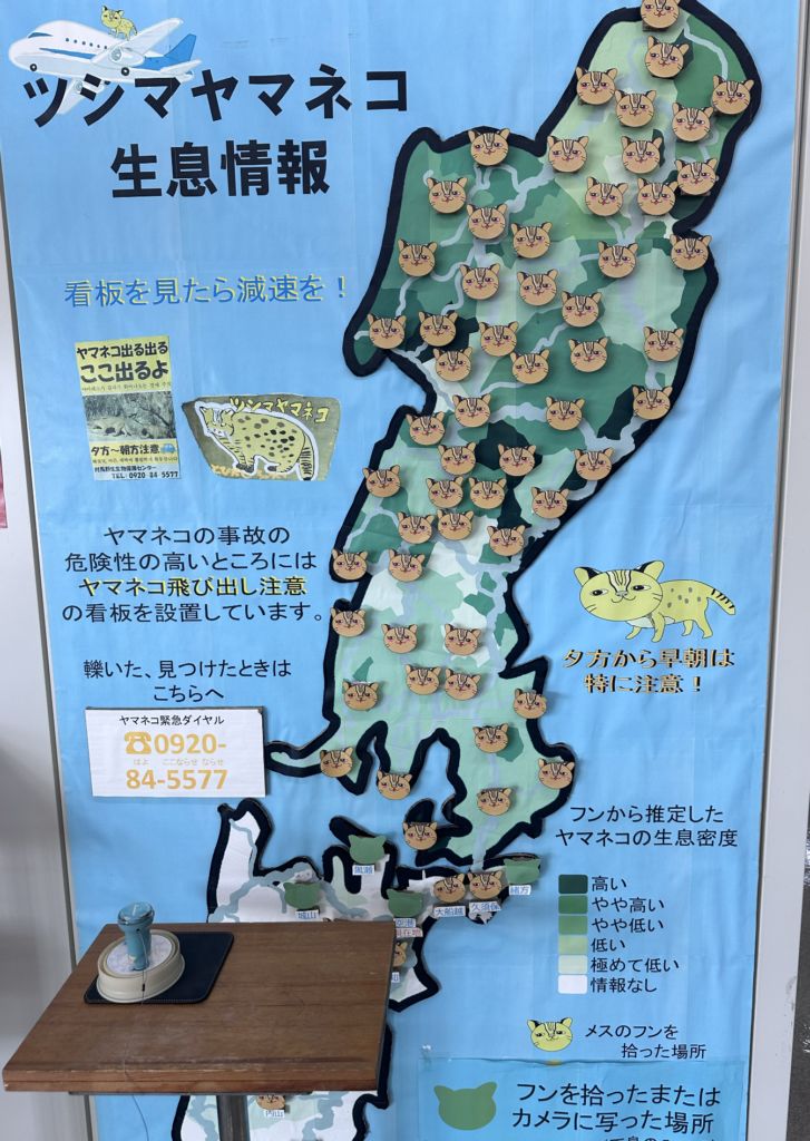 ちなみにここで知り合った現地の方は、ツシマヤマネコの多い北部なので生で見たことがあると言っていました。うらやましい。