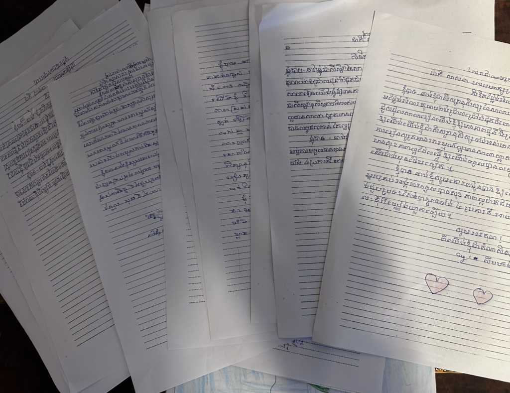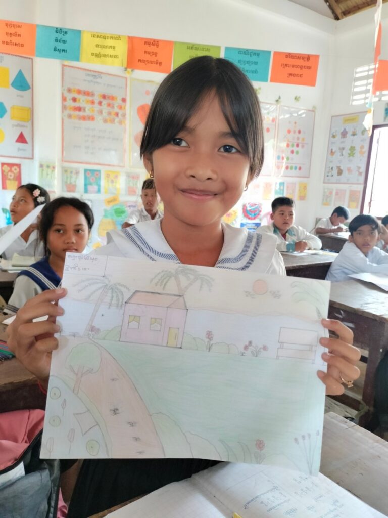 カンボジアの子どもたちはめちゃくちゃ字がうまくてアートみたい。絵も線がすごくキッチリ描かれてて、カンボジアの人は手先がホント器用。めちゃオシャレですし。